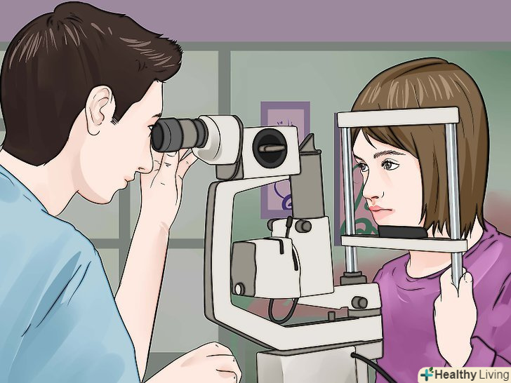 Регулярно перевіряйте зір. Проходите перевірку кожен рік. Навіть якщо ви не носите окуляри або контактні лінзи, необхідно регулярно стежити за станом зору. Багато очні хвороби мають малопомітні ознаки, які можуть бути виявлені фахівцем при огляді.[11]- Розширення зіниць при огляді. Дана процедура дозволяє провести більш повний огляд ваших очей. Офтальмолог закапає в очі спеціальний розчин, після чого зіниці збільшаться в розмірі, а потім проведе огляд.[12]