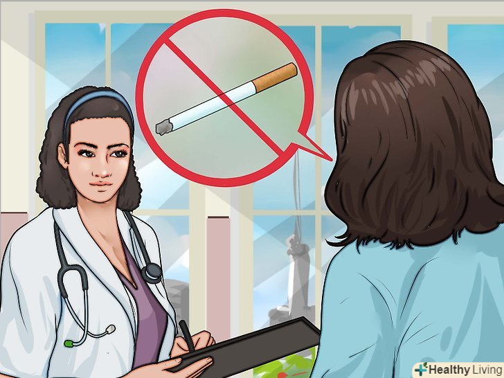 Обговоріть з лікарем можливість кинути палити.якщо ви курите, то постарайтеся позбутися від цієї звички. Куріння підвищує ризик виникнення проблем зі здоров'ям, які впливають на зір (катаракта, дистрофія жовтої плями і запалення внутрішніх шарів очей).[13]- Запишіться до терапевта і обговоріть, як краще кинути палити. Доктор запропонує вам кілька дієвих порад, які допоможуть відмовитися від сигарет. Також можна отримати направлення на прийом до фахівця з лікування залежностей або психотерапевта.