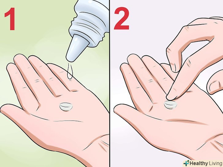 - Вимийте руки і нанесіть на пальці невелику кількість розчину, щоб не «шокувати» очі, коли будете знімати лінзи.