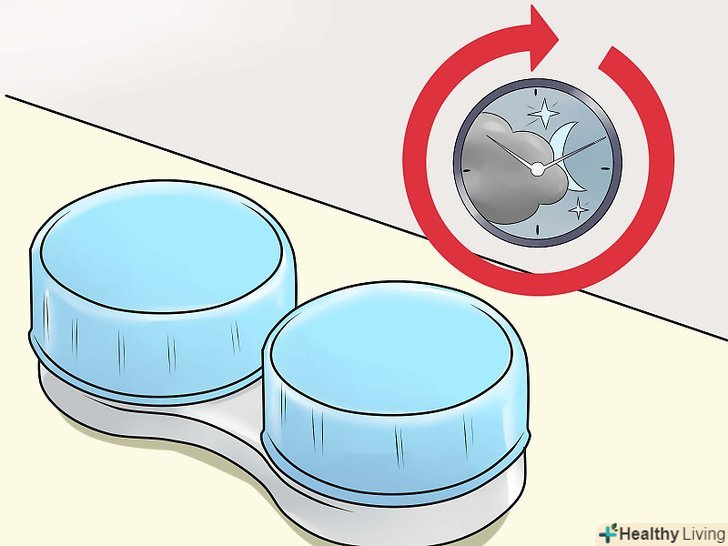 Зберігайте лінзи в розчині відповідно до вказівок.щоб забезпечити максимальну дезінфекцію, Зберігайте лінзи в розчині тільки зазначений час. Для більшості розчинів час складе як мінімум 4-6 годин, чого повинно вистачити на всю ніч.[20]- За цей час ваші очі встигнуть відпочити і розслабитися після напруги.