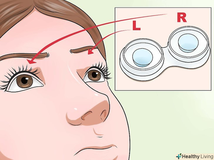 Кожен раз починайте з одного і того ж очі.лінзи неідентичні і невзаємозамінні, так що їх не слід плутати. Завжди починайте з одного і того ж очі, щоб випадково не переплутати контактні лінзи.[4]
