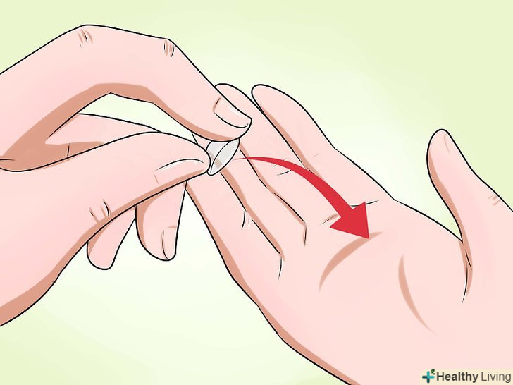 Покладіть лінзу в іншу долоню.не намагайтеся перевернути лінзу і просто покладіть на долоню другої руки.[11] цей спосіб дозволить легко очистити лінзу провідною рукою.