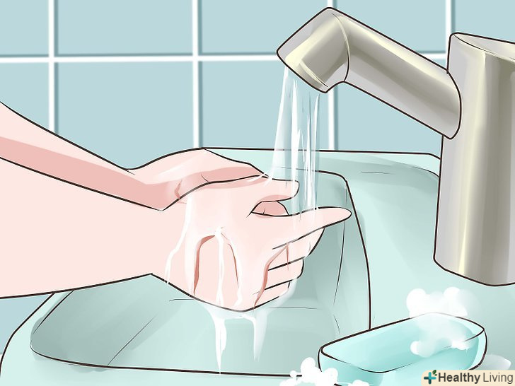 - Сполосніть руки. Переконайтеся, що змили всі залишки мила, так як воно може викликати подразнення очей.[8]