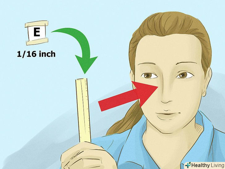 Проведіть тест на збіжність.даний тест перевіряє, який з очей є домінуючим на вкрай близьких відстанях. Його результати можуть відрізнятися від результатів інших тестів.[4]- Візьміть лінійку. Напишіть одну букву на аркуші паперу. Буква повинна бути приблизно 1,5 мм у висоту і ширину. Прикріпіть букву скотчем до лінійки, щоб вона не зміщувалася.