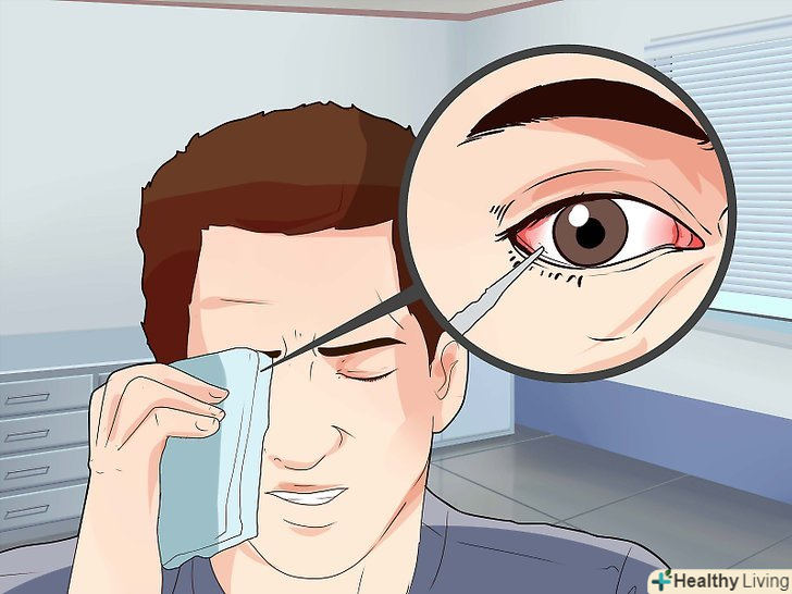 Визначте наявність подряпини або виразки.якщо вам вдалося позбутися від смітинки, але очей як і раніше щось дратує, то у вас на оці могла утворитися подряпина або виразка. Також це може свідчити про абразивної травмі рогівки. Всі ці стани можуть викликати симптоми у вигляді болю, роздратування і розмитого зору. У подібній ситуації вам необхідно звернутися до окуліста якомога швидше.[13]