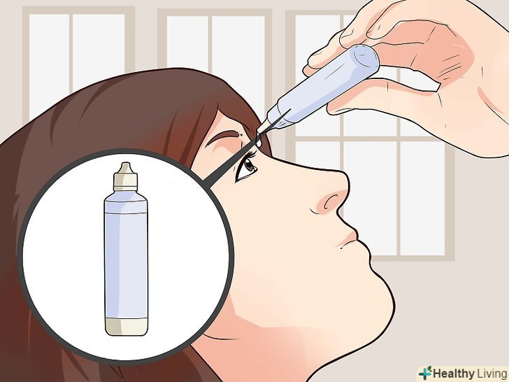 Спробуйте промити око сольовим розчином.якщо у вас під рукою немає чистої води або ви хочете скористатися іншим методом, спробуйте виконати промивання очі сольовим розчином. Візьміть сольовий розчин і капніть кілька крапель собі в око. Якщо смітинка не вимиється, спробуйте закапати ще кілька крапель.