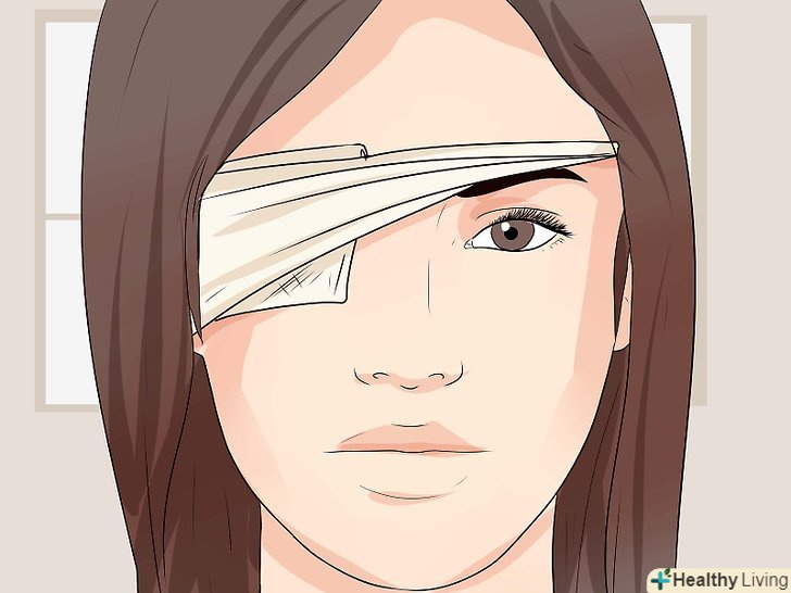 Накладіть на око пов'язку.якщо вам не вдалося самостійно позбутися від смітинки в оці, накладіть на око пов'язку і зверніться за медичною допомогою. Також вам слід звернутися до медиків , якщо Промивання ока не допомогло прибрати смітинку з рогівки. Якщо ви продовжите самостійні спроби видалити смітинку, то можете подряпати очей або пошкодити рогівку. Накладення пов'язки на око дозволить захистити його від впливу освітлення, що створить вам більший комфорт до моменту отримання медичної допомоги.- Якщо після безуспішних самостійних спроб промити око ви негайно зверніться за медичною допомогою, то можна не накладати пов'язку, а просто тимчасово прикласти до ока м'яку ганчірочку або рушник.[12]