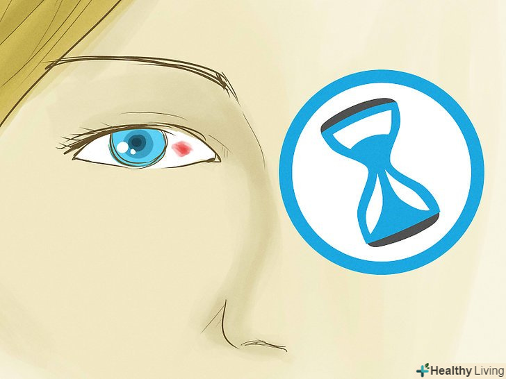 Зачекайте, поки лопнув капіляр заживе.[6] якщо ви сильно чхнете або кашлянете або ж просто занадто інтенсивно потрете очі, у вас може лопнути кровоносний капіляр. Лікарі називають це явище підкон'юнктивальним крововиливом. Зазвичай травма трапляється в одному оці і відбувається це безболісно. Розрив капіляра заживає природним шляхом. На це може піти від декількох днів до двох тижнів.- Це може статися, якщо ви приймаєте препарати, що знижують в'язкість крові, піднімаєте тяжкості, страждаєте запором або займаєтеся іншими справами, які стимулюють приплив крові до голови, а також якщо у вас є захворювання крові. Якщо це трапляється часто, порадьтеся з лікарем. Для постановки діагнозу може знадобитися аналіз крові.