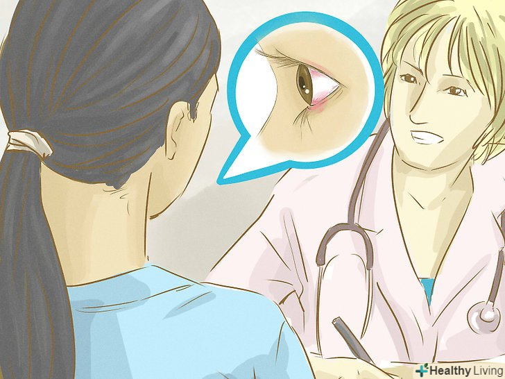 Проконсультуйтеся з офтальмологом.найкращий спосіб вибрати відповідні краплі-поговорити з офтальмологом про причини і симптоми. Лікар огляне вас і призначить вам метод терапії і препарат.- Якщо почервоніння очей викликано алергією, можливо, вам потрібні очні краплі з антигістамінними компонентами. Ці речовини можуть викликати сухість очей, тому їх можна поєднувати з так званими «штучними сльозами».