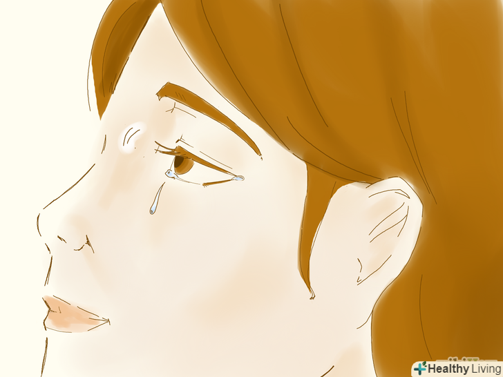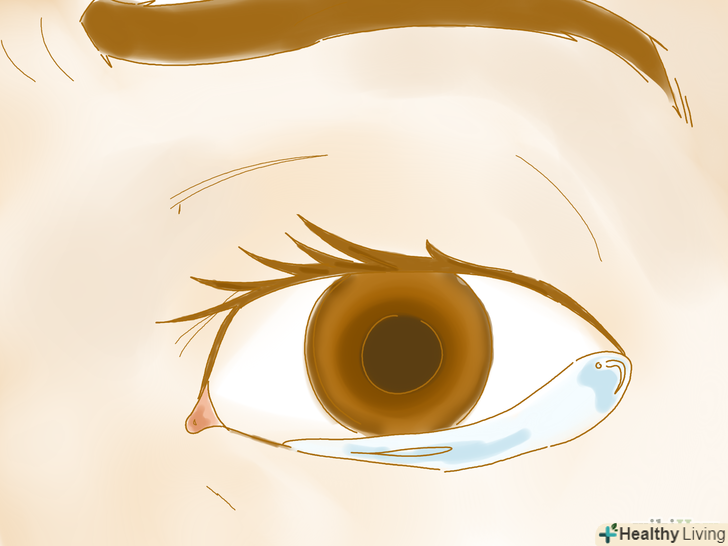 Змусьте себе плакати, щоб сльозами промити очі, якщо вони самі не з'являються в результаті попадання в них крупиці.Подумайте про щось сумне, що допоможе сльозам виділятися.