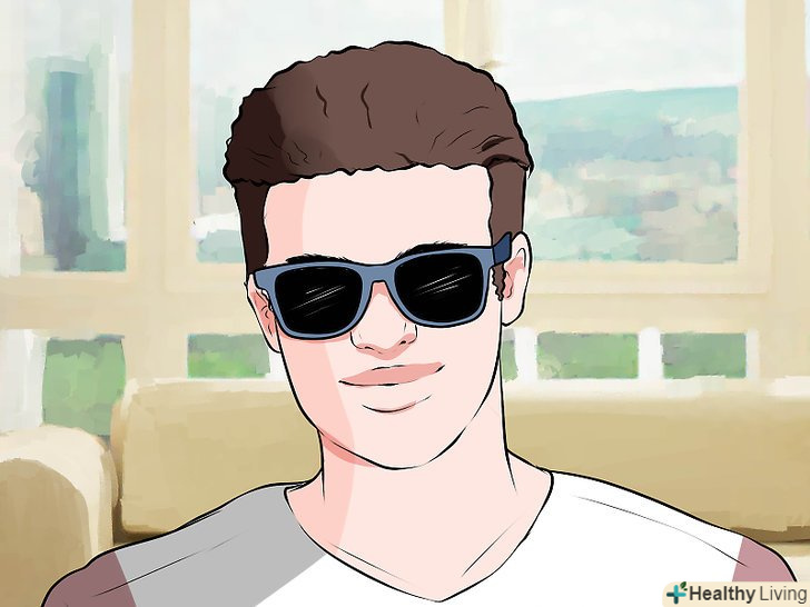 Носіть сонцезахисні окуляри.люди часто мружаться через занадто яскравого сонячного світла. Якщо ви мружитеся на вулиці в сонячну погоду, для вирішення проблеми досить придбати сонцезахисні окуляри. Виберіть відповідну вам марку окулярів і при цьому врахуйте, що деякі виробники основну увагу приділяють зовнішньому вигляду окулярів, в той час як інші — їх функціональним якостям.- Простежте, щоб окуляри блокували щонайменше 99% ультрафіолетового випромінювання.