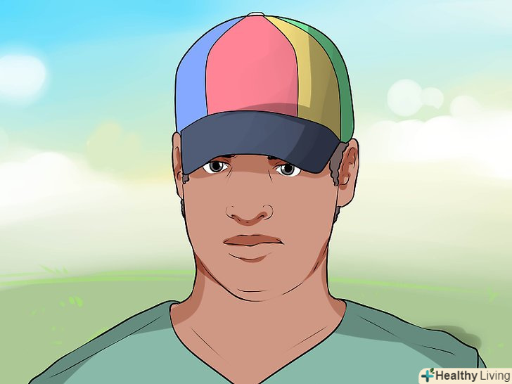 Носіть головний убір або козирок.Поля капелюхи або козирок прикриють ваші очі від сонячних променів. Вибирайте зручний і відповідний Вам за стилем головний убір. Занадто просторий капелюх або кепка може злетіти при сильному пориві вітру. З іншого боку, занадто тісна може перешкоджати нормальному кровообігу і викликати дискомфорт.- Багато головні убори мають різні розміри, або їх можна відрегулювати. Вибирайте відповідний розмір.