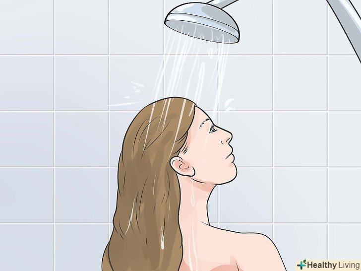 Встаньте під душ, щоб вода стікала по ваших відкритих очах.якщо ви знаходитесь вдома і в ваше око потрапив дрібний предмет або сміття, спробуйте вимити його під душем.- Не направляйте воду прямо на око. Замість цього пустіть воду на лоб таким чином, щоб вона стікала по вашим очам і обличчю.
