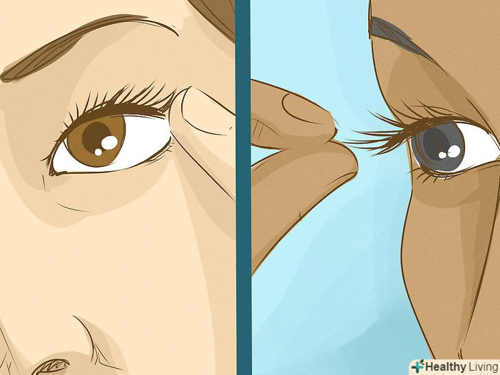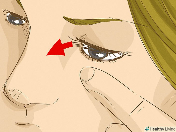 Пальцем перемістіть вію до внутрішнього куточка ока (до носа).Встаньте перед дзеркалом і уважно стежте за тим, що ви робите. Немає необхідності підштовхувати вію до самого куточка ока, просто відсуньте її подалі від зіниці і райдужки.