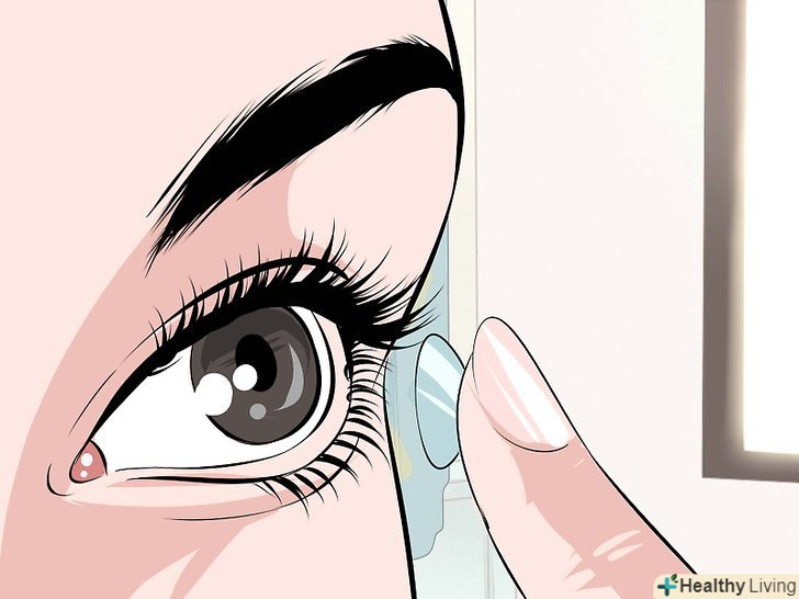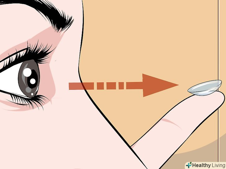 Підніміть лінзу на рівень очей.потрібно дивитися на лінзу під правильним кутом. Огляд під різними кутами може зіграти з вашими очима злий жарт, особливо якщо врахувати той факт, що контактні лінзи потрібні вам, щоб краще бачити. Погляньте на неї безпосередньо з боків.[2]