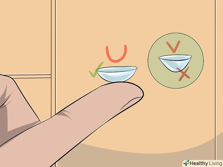 Огляньте лінзу.якщо її краї спрямовані вгору, як в однойменному тако, форма лінзи правильна. Якщо вони округлі або вигнуті, значить, лінза вивернута навиворіт і повинна бути виправлена[5].- Якщо стиснути правильно вивернуті лінзи, то їх вигину повинно бути достатньо, щоб вони пригорнули один до одного.