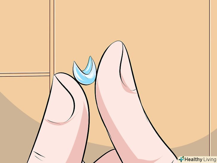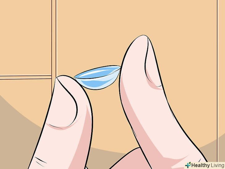 Помістіть лінзу між вказівним і великим пальцем.розмістіть її так, щоб пальці торкалися внутрішньої частини контактної лінзи, при цьому не закривали і не торкалися її країв. Вільного місця повинно бути достатньо, щоб краях контактної лінзи було куди згинатися.[4]
