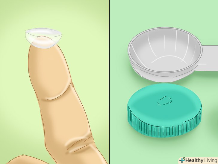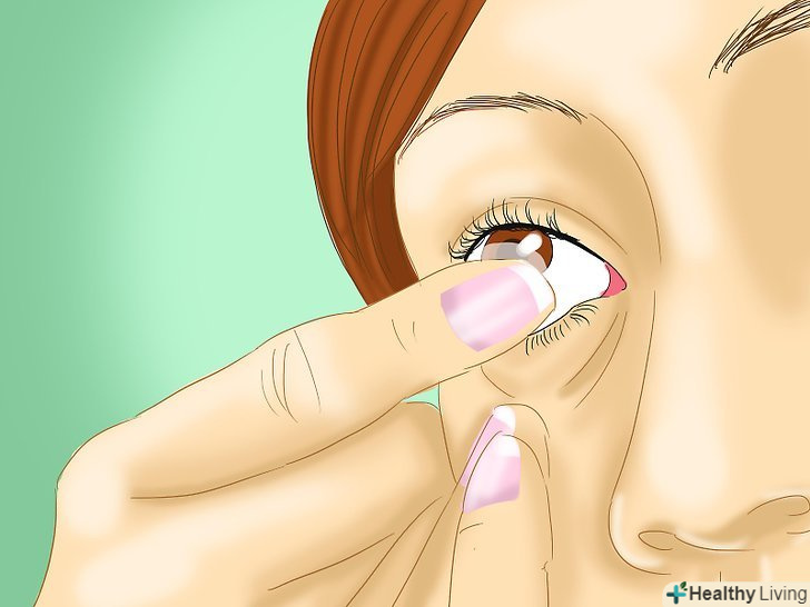 Доглядайте за роздратованими очима.роздратування під час носіння лінз могло виникнути з різних причин. Можливо, очам не вистачає повітря, у вас розвинулася алергія або інфекція, або на лінзі скупчилася бруд. Крім того, лінза могла порватися, у неї міг закінчитися термін носіння або її форма просто не підходить вашому оку. Якщо відчуєте роздратування, зніміть лінзи і покажіться лікаря, навіть якщо ви ще не переносили їх.[12]- Зніміть лінзи і покладіть їх в контейнер з рідиною для лінз. Якщо вам здасться, що ви переносили лінзи або що вони пошкоджені, відразу ж позбудьтеся від них.