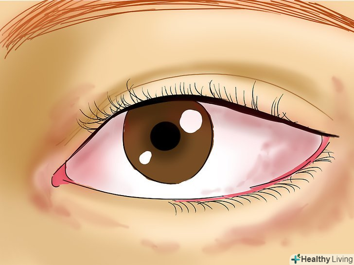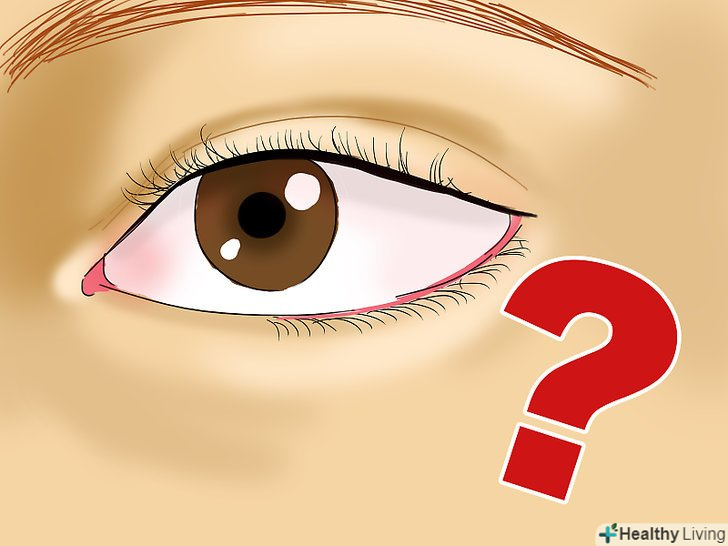 Пошукайте у себе симптоми кон'юнктивіту з гіперплазією сосочків. Це різновид алергічного подразнення очей. Хоча в назві захворювання є термін кон'юнктивіт, воно не є інфекційним, і їм не можна заразити іншого.[4] Кон'юнктивіт з гіперплазією сосочків викликається алергічною реакцією на рідину для лінз, на лінзу, на тертя лінзи об повіку або на речовини, які накопичуються на лінзах. Це захворювання може виникнути і у випадку з м'якими проникними, і з більш щільними лінзами, хоча частіше таке відбувається у випадку з м'якими лінзами.[5] якомога швидше покажіться лікарю, якщо у вас з'являться наступні симптоми:- Свербіж