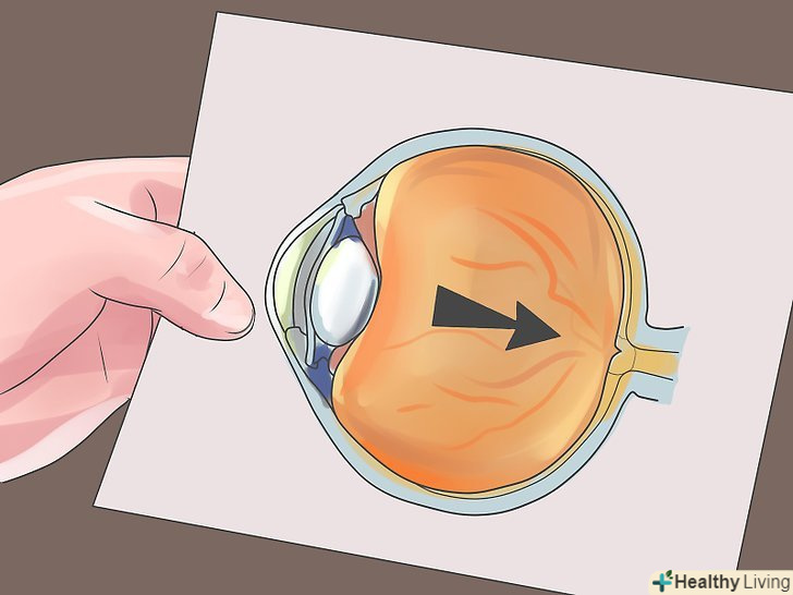 Зверніть увагу на розмитий зір. це стан, при якому ви не можете бачити предмети ясно і деталізовано. Людина, яка страждає від розмитого зору, бачить предмети недостатньо чітко.[2] Так чи інакше, з цього симптому судити про наявність глаукому непросто – у вас може просто погіршуватися зір, що є досить поширеною проблемою.- Зазвичай це легко можна виправити коригуючими лінзами-особливо, якщо проблема полягає тільки в неможливості побачити чітко близькі або далекі предмети (відповідно, далекозорість або короткозорість). Цей симптом-лише сигнал тривоги, якщо супроводжується іншими проявами.
