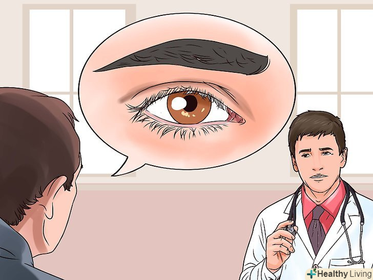 Пройдіть огляд.регулярно відвідуйте офтальмолога, щоб виключити наявність порушення зору або хвороб, які можуть вплинути на здоров'я ваших очей. Якщо у вас нечіткий зір, короткозорість або далекозорість, вам можуть знадобитися коригувальні окуляри або операція.[4]- Ступінь відвідування лікаря залежить від вашого віку, здоров'я та ризику виникнення проблем з очима. Це саме ті фактори, які визначають, як часто вам слід відвідувати офтальмолога. Якщо ви відчуваєте будь-які труднощі з очима, як можна швидше сходіть на прийом до окуліста, адже чим раніше ви почнете лікування, тим кращими будуть результати.