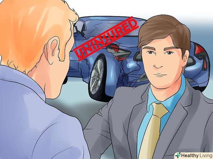Поговоріть зі своєю страховою компанією, якщо ви потрапили в аварію з незастрахованим автомобілістом.незважаючи на те, що всі водії зобов'язані застрахувати свій автомобіль, деякі цього не роблять. Якщо ви потрапили в аварію, в якій винен незастрахований водій, вам доведеться або особисто подати на нього в суд, щоб відшкодувати вартість ремонту і медичні витрати, або виставити претензію своєї власної страхової компанії.- Деякі страхові компанії пропонують включити в страхове покриття пункт про незастрахованих автомобілістів. Подумайте про додавання цього пункту до вашого контракту, щоб захистити себе від незастрахованих водіїв.