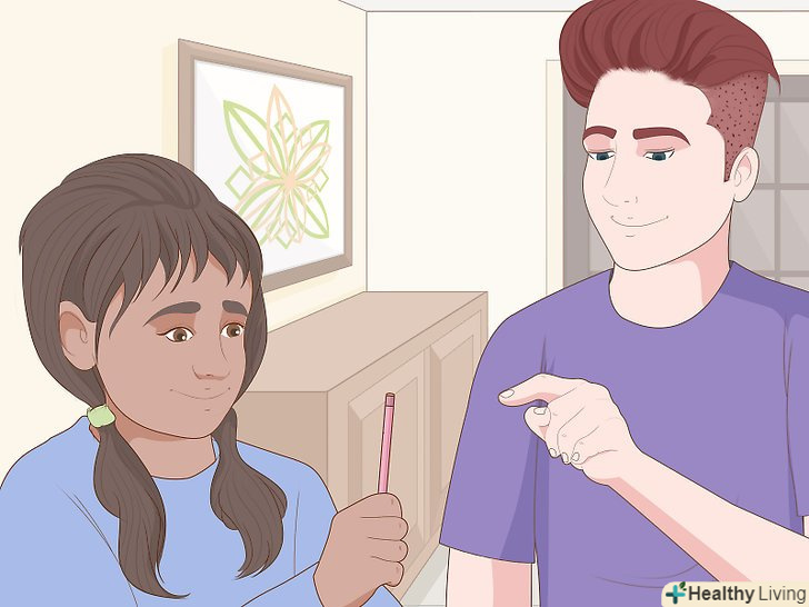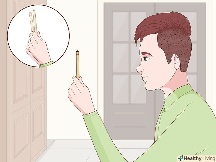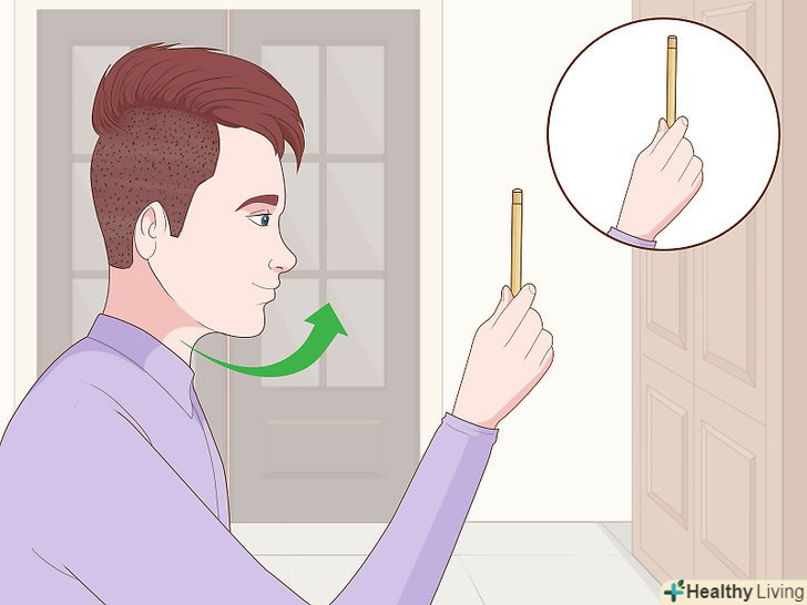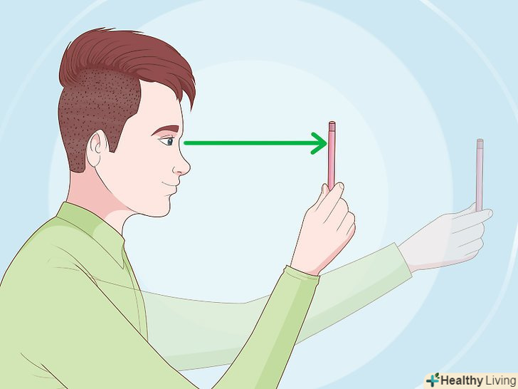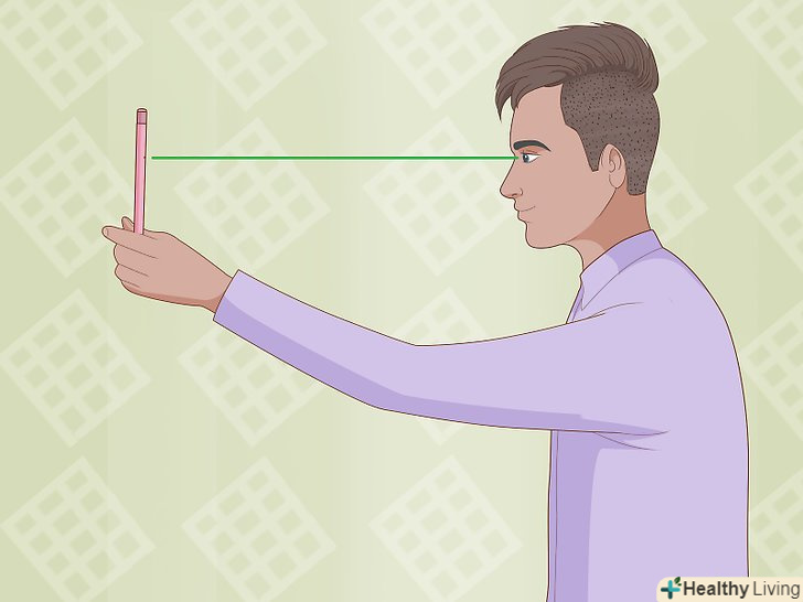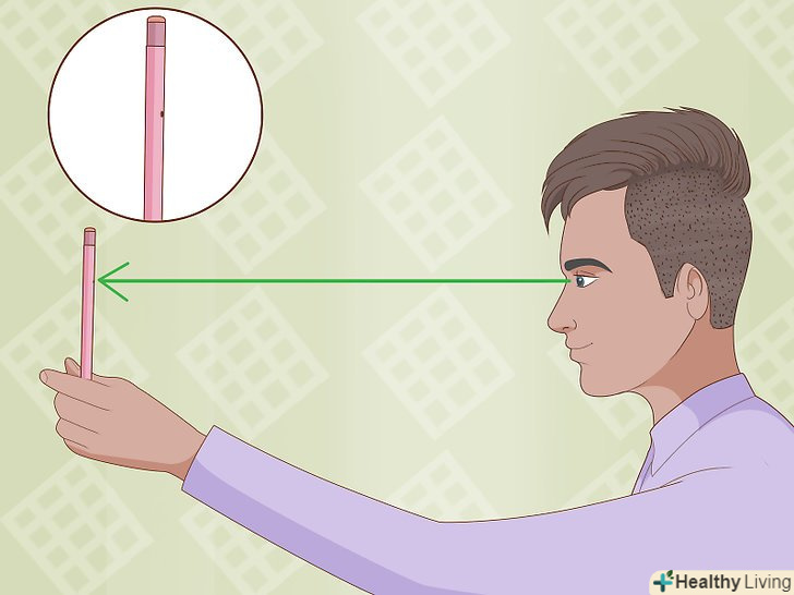 Візьміть олівець і піднесіть його до обличчя на відстань витягнутої руки.тримайте олівець вертикально, так щоб ластик на його кінці був спрямований до стелі або підлоги.[2]- Якщо у вас є помічник, який зможе тримати олівець і рухати ним, витягніть свою руку, щоб визначити, на якій відстані слід помістити олівець.