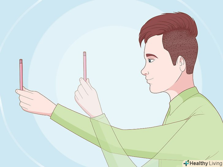 Знову подивіться на олівець.відпочивши, спробуйте сфокусувати погляд на олівці так, щоб той не двоївся.- Якщо ви все ще бачите два олівці, відпочиньте ще пару секунд і спробуйте ще раз. Не турбуйтеся, якщо бачите два олівця і з другої спроби - з часом у вас все вийде! У цьому випадку просто перейдіть до наступного кроку.