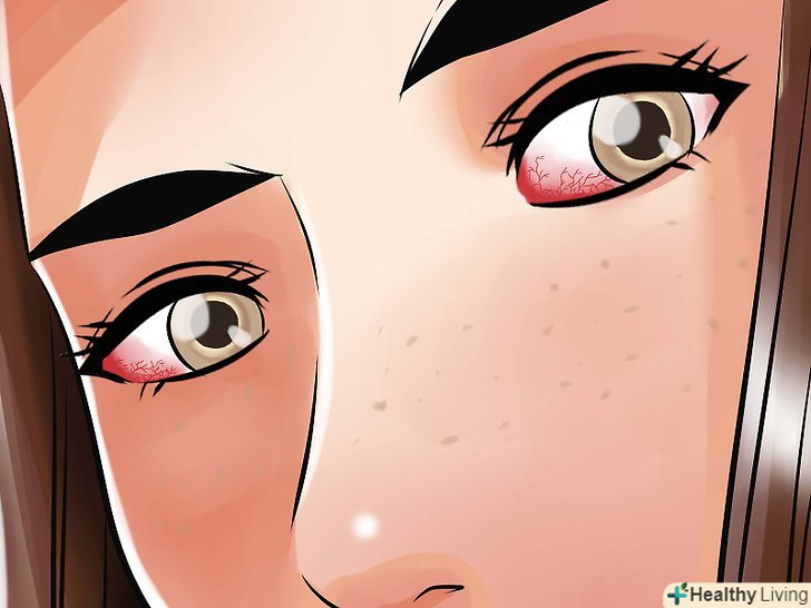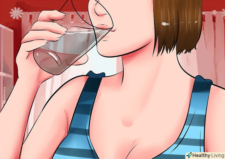 Вживайте менше спиртних напоїв. Стакан вина не зашкодить, але намагайтеся утримуватися від надмірного вживання алкоголю. Алкоголь витягує дорогоцінну рідину зі шкіри, що призводить до зневоднення. В результаті шкіра навколо очей слабшає і починає провисати. Якщо ви все-таки випили неабияку кількість алкогольних напоїв, то, перш ніж лягти спати, випийте побільше води, щоб уникнути зневоднення шкіри.- Якщо ви випили зайве, то не допустити зневоднення шкіри допоможе зволожуючий крем, нанесений під очі.[25]