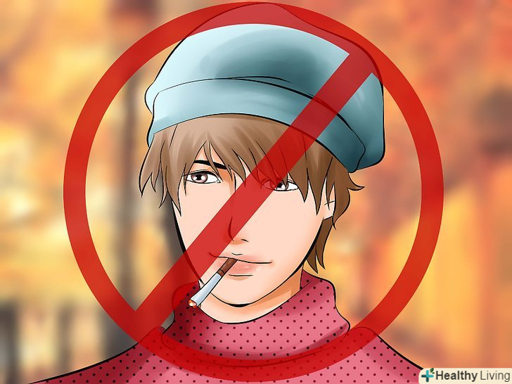 Киньте палити.якщо ви курите, то тим самим шкодите своїй шкірі. Шкіра на обличчі стає сухою і слабкою, що призводить до появи помітних мішків під очима. Постарайтеся впоратися з цією шкідливою звичкою. Це допоможе вам не тільки позбутися від мішків під очима, але і в цілому зміцнити своє здоров'я.[26]