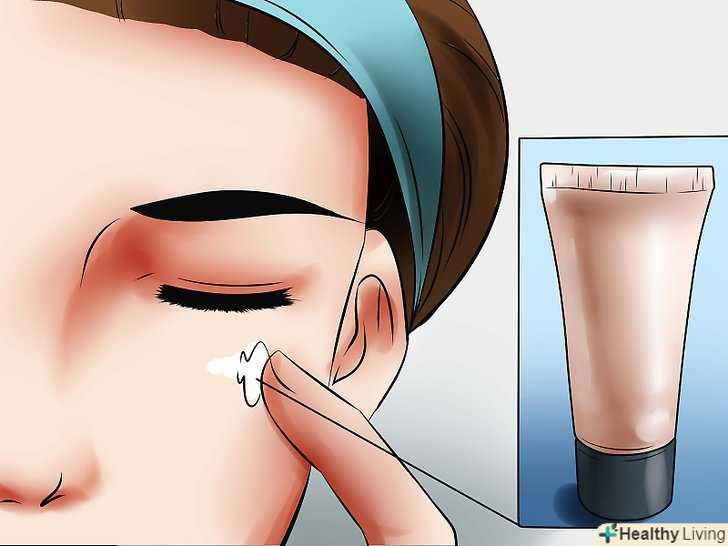 Користуйтеся маскуючим олівцем.якщо ви поки не знайшли ефективного засобу боротьби з мішками під очима або схильні до них генетично, то спробуйте замаскувати їх консилером. Експериментуйте з торговими марками, поки не знайдете консилер, який найкраще підходить для типу і тону вашої шкіри. Наносите його на шкіру під очима акуратними, постукуючими рухами. Намагайтеся його не втирати, щоб не викликати роздратування шкіри.[6]- Ви можете купити тональний крем з маскуючими ефектом. Він допоможе замаскувати мішки, створивши однорідний тон і плавний перехід між відтінком шкіри під очима і рештою шкірою.[7]