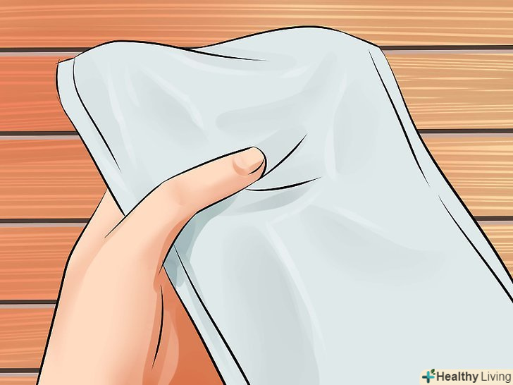 Робіть холодні компреси.холодна вода сприяє регідратації шкіри, а також допомагає зменшити припухлість і мішки. Також вона допомагає зменшити набряклість, звужуючи кровоносні судини. Саме тому холодний компрес — це дієвий засіб, що допомагає позбутися від мішків під очима. Намочіть чисту ганчірочку в прохолодній або холодній воді. Зручно сядьте, покладіть компрес на очі і злегка притисніть. Також можна просто промокнути шкіру навколо очей вологою ганчірочкою. Робіть це протягом 5-10 хвилин.[9]- Того ж ефекту можна домогтися за допомогою холодної ложки. Покладіть дві ложки в морозильник приблизно на годину. Потім вийміть їх і акуратно помасажуйте ними область під очима, намагаючись не зачіпати самі очі. Холод сприяє звуженню кровоносних судин, а масаж — зменшенню набряку.