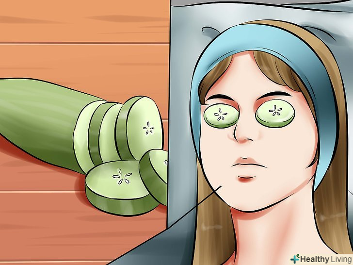 Скористайтеся огірками.скибочки огірків прикладають на очі для того, щоб зменшити мішки — цей спосіб пройшов випробування часом. Огірки мають в'яжучі властивості, а також освітлюють шкіру, допомагаючи позбутися від мішків під очима. Завдяки великій кількості води, що міститься в огірках, вони нададуть зволожуючий ефект, а холод посприяє зменшенню набряклості і в'ялості шкіри під очима. Охолоджуйте огірок як мінімум 30 хвилин. Відріжте два кружечка. Сядьте або ляжте, поклавши скибочки огірка на очі на 10 хвилин. Прибравши огірки з очей, змийте сік водою. Для того щоб домогтися гарного ефекту, проробляйте цю процедуру двічі на день протягом тижня або довше.[10][11]- Також можна спробувати мазати шкіру під очима огірковим соком. Видавіть сік з огірка і лимона, а потім змішайте їх в рівних пропорціях. Змочіть ватний тампон в вийшла суміші і акуратно нанесіть на шкіру під очима. Змийте сік через 15 хвилин. Повторюйте цю процедуру щодня протягом тижня або довше.