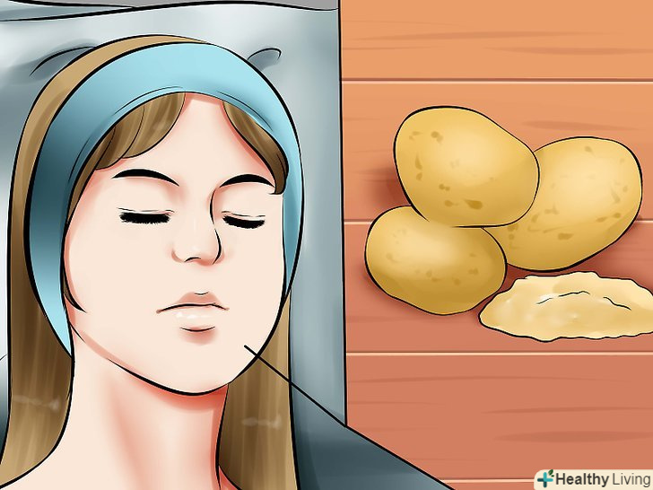 Скористайтеся картоплею.можете спробувати позбутися від мішків під очима за допомогою звичайної картоплі. У ньому містяться антиоксиданти і поживні речовини, які в поєднанні з холодом допоможуть зменшити набряклі і запалені мішки під очима. Наріжте охолоджену картоплю тонкими скибочками. Сядьте або ляжте і покладіть скибочки картоплі на очі на 10 хвилин. Робіть це щодня.[12]- Також можна зменшити мішки під очима за допомогою картопляного соку. Натріть на тертці картоплю, потім відіжміть і змочіть в отриманому соку два ватних кульки. Покладіть змочені ватяні кульки на закриті очі і залиште на 10-15 хвилин. Потім змийте сік з повік прохолодною водою. Повторюйте цю процедуру один-два рази на день протягом тижня.