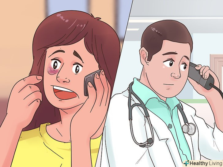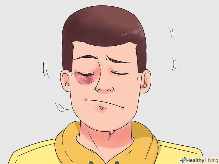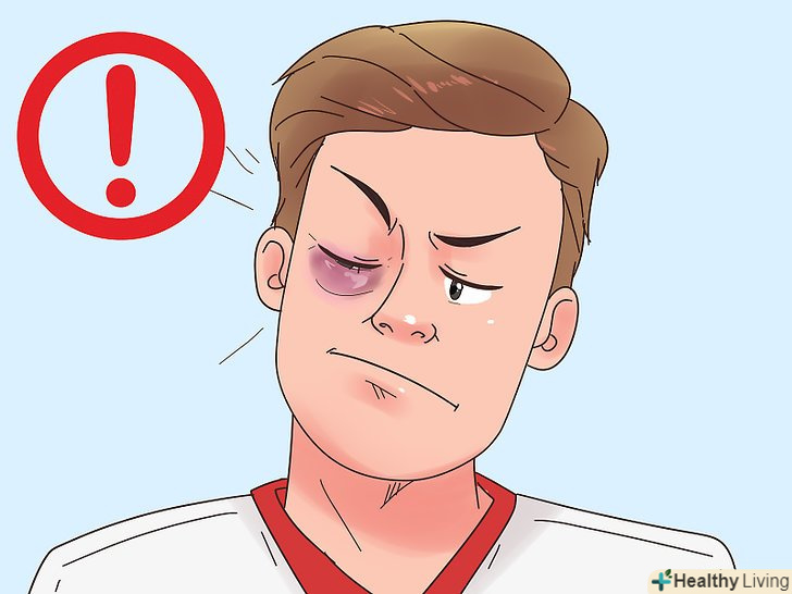 Перевірка серйозності травми.сам по собі синяк може виглядати страхітливо, але не обов'язково мати серйозні наслідки. Але якщо крім синяка у вас пошкоджений очей, то важливо якомога швидше звернутися до лікаря. Можливо, у вас важке пошкодження ока або черепно-мозкова травма.- Уважно розгляньте білок і райдужку ока. При наявності крові в цих точках у вас може бути критичне пошкодження ока. Негайно запишіться на терміновий прийом до офтальмолога.[7]