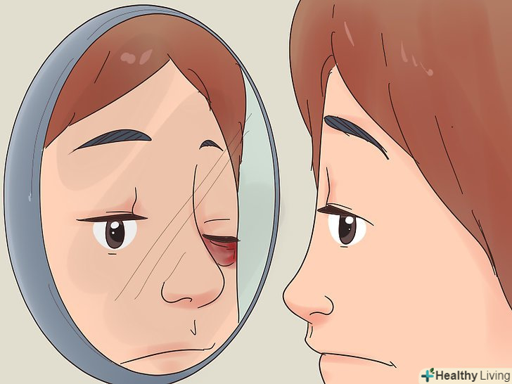 Не намагайтеся відкрити очей.[5] нерідко синяк під оком може супроводжуватися значним набряком. В такому випадку вам не слід намагатися відкрити очей, якщо для цього потрібно докладати зусиль. Переконавшись, що у вас всього лише синяк і зір не постраждало, хворе око можна не відкривати кілька днів.