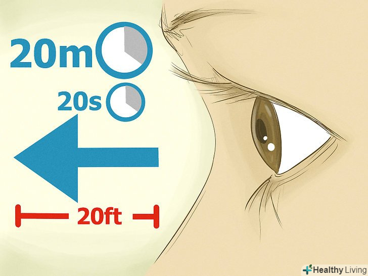 Використовуйте метод 20-6-20.кожні 20 хвилин відводите погляд від екрану на будь-який об'єкт на відстані 6 метрів і дивіться на нього 20 секунд.[7]- Встановіть нагадування, щоб не забувати робити розминку або розслабляти очі.