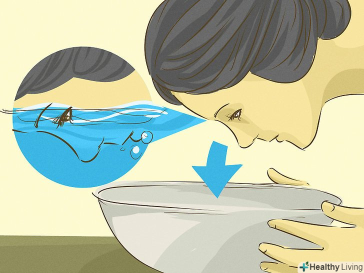 Занурте обличчя в миску з холодною водою.для посилення дії холодної води можна налити воду в миску і опустити обличчя в воду на 30 секунд. Перед зануренням зробіть глибокий вдих, а потім підніміть голову, як тільки у вас закінчиться повітря.- У разі больових або інших симптомів негайно припиніть використовувати даний метод і зверніться до лікаря.