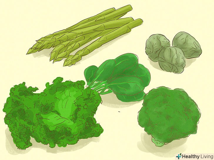 Вживайте в їжу більше зелених листових овочів.на додаток до вітаміну A, зелені листові овочі на зразок капусти і шпинату містять лютеїн і зеаксантин, які відсівають шкідливий світло. Також вони містять антиоксиданти і вітамін B12, що бере участь у виробництві кров'яних клітин. Вживайте більше зелених листових овочів, щоб збільшити запас сил в організмі і боротися з втомою очей.- Капуста і шпинат допомагають запобігти появі катаракти.