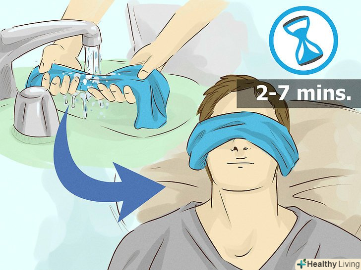 Прикладайте холодну вологу маску.спробуйте полегшити напругу, щоб очі знову ожили. До того ж, очі зможуть відпочити, поки будуть закриті кілька хвилин.- Складіть невеликий рушник за розміром маски, щоб вийшло накрити обидва ока.