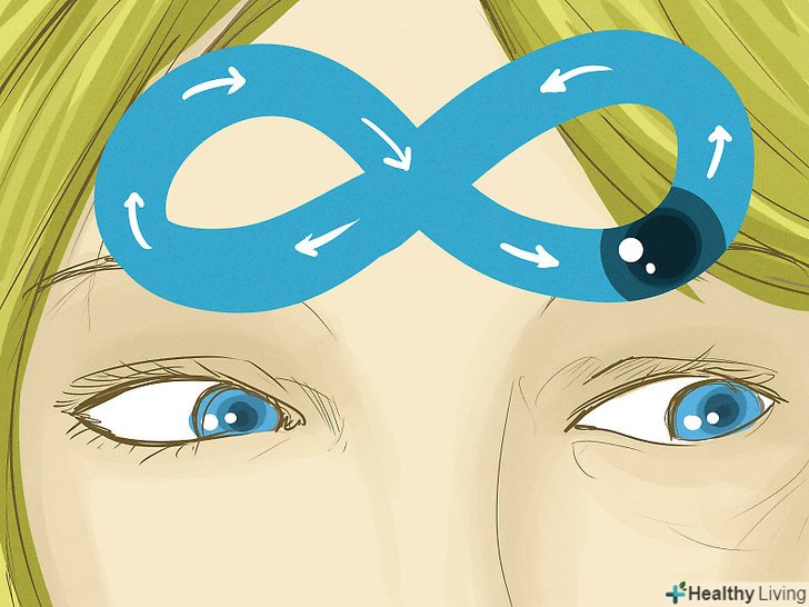 Дивіться на уявні годинник.існують вправи, розроблені спеціально для очей з метою зміцнення різних очних м'язів. Подібні вправи допоможуть заспокоїти втомлені очі і дозволять запобігти швидку втому. Уявіть перед собою уявні годинник. Визначте центральну точку циферблата. Не рухайте голову і подивіться очима на 12 годин. Потім знову поверніться очима до центральної точки. Далі подивіться на 1 годину і знову поверніться до центральної точки.- Виконуйте вправу протягом 10 хвилин.