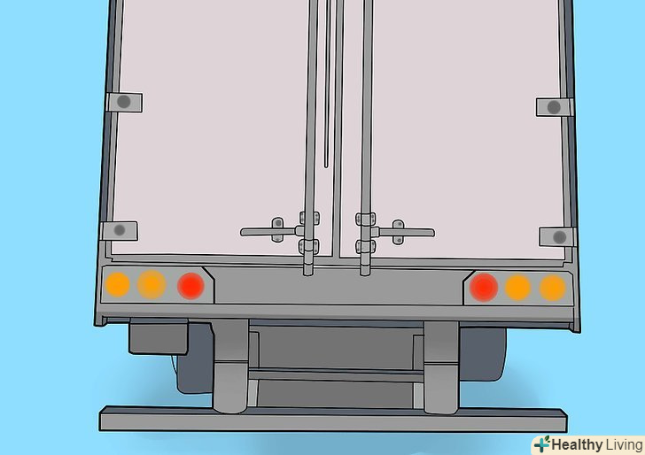 - Якщо ви наближаєтеся до вантажівки в темний час доби, переключіть світло фар на ближній, так як великі дзеркала заднього виду вантажівки будуть відображати ваше світло, який може вас засліплювати.[8]