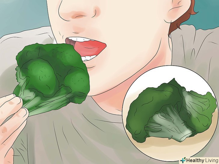 Їжте здорову, багату вітамінами їжу.темні кола можуть утворюватися через брак вітамінів і мінералів, таких як кальцій, залізо, A, E і B12, і антиоксидантів. Їжте більше зелених листових овочів і їжу, багату вітамінами. Скоротіть споживання солі. [18]