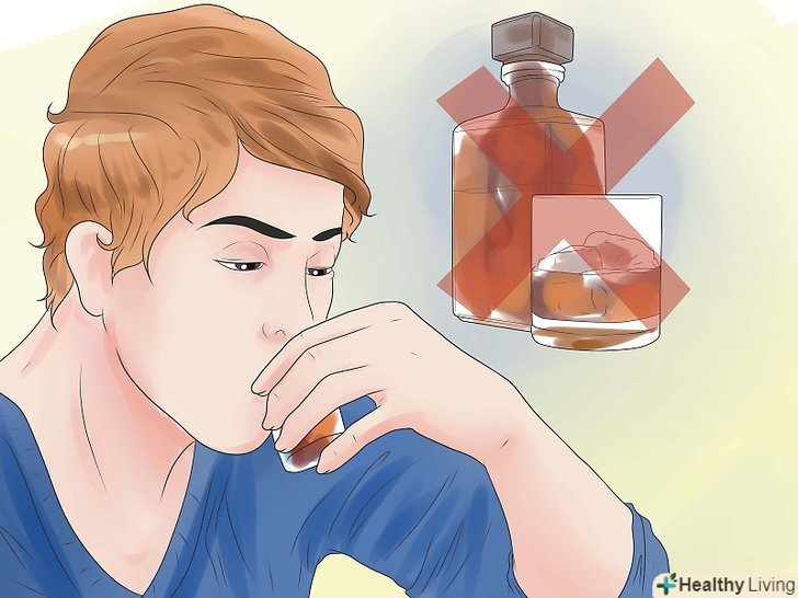 Уникайте алкоголю. Алкоголь призводить до того, що шкіра стає сухою і тонкою, якщо ви скоротите споживання алкоголю, ви скоротите утворення темних кіл і припухлості під очима.[19]