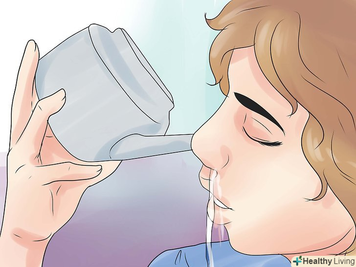 Використовуйте неті-пот (пристрій для промивання носа).неті-пот зовні нагадує невеликий чайник. Він використовується для промивання носових пазух. Налийте в неті-пот теплу дистильовану воду і додайте КОШЕРНУ або морську сіль (не використовуйте йодовану сіль). Візьміть від ½ до 1 чайної ложки солі на кожні півлітра води. [12] нахиліть голову на бік і влийте воду в одну ніздрю. Вода повинна витекти з іншої ніздрі.[13]- Дотримуйтесь інструкцій на упаковці неті-поту.