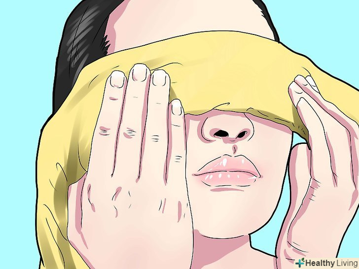 Прикладіть холодний компрес.Холод звужує кровоносні судини, які сприяють утворенню припухлостей і темних кіл під очима. Намочіть лицьовий рушник крижаною водою або використовуйте округлу сторону промороженої ложки. Ляжте, закрийте очі і прикладіть компрес на 15 хвилин. Повторюйте процедуру 3-4 рази на день для зменшення темних кіл під очима.[7]