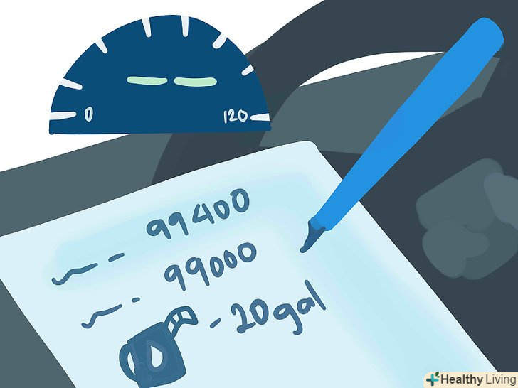 Коли наступного разу вам потрібно буде заправитися, наповніть бак знову і подивіться, що показує одометр. Запишіть. Назвемо цю цифру "B". Також запишіть кількість використаного палива.- Відніміть цифру " A "від цифри" B", щоб підрахувати пройдену відстань.цей результат розділіть на кількість витраченого палива.