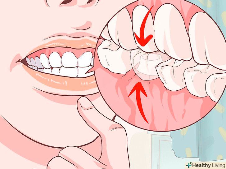 Стисніть зуби. [20] обережно стисніть щелепу, щоб перевірити, як коронка розташована і зафіксована, і точно посадити її на місце.- Залежно від інструкції із застосування використовуваного вами цементу, може знадобитися притиснути коронку на кілька хвилин, а потім ретельно зняти надлишки цементу з зуба або ясен.