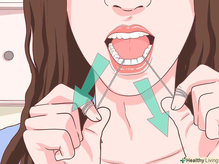 Акуратно видаліть надлишки цементу між зубами.не натягуйте зубну нитку, щоб вона не вискочила, а замість цього вставте її між зубів і злегка стисніть щелепи. Так ви зможете уникнути того, що коронка знову випадково випаде.