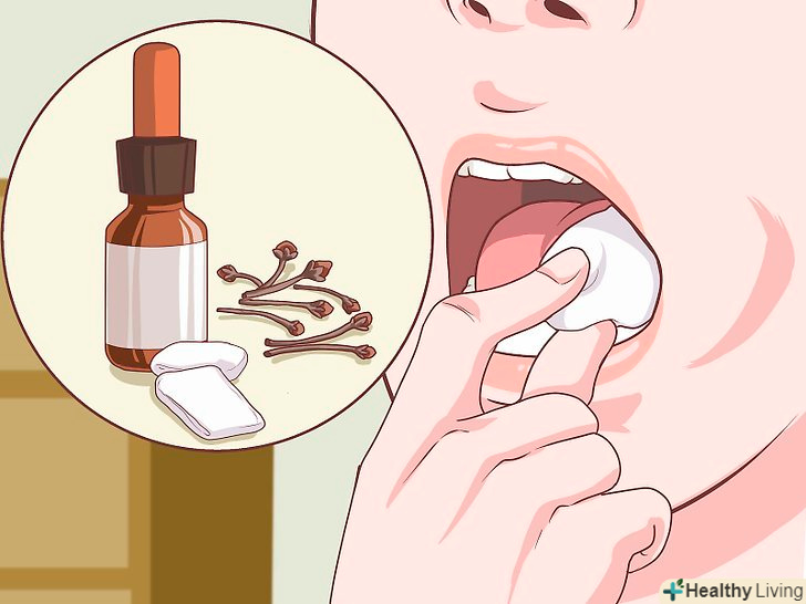 Позбавтеся від болю.якщо через тимчасову коронки зуб або щелепу стали чутливі або з'явився біль, намажте гвоздикове масло на ватний тампон і акуратно нанесіть на ясна і місце зуба. [23] це викличе оніміння цієї області. Ви можете знайти гвоздичне масло в аптеці або в супермаркеті, у відділі спецій.